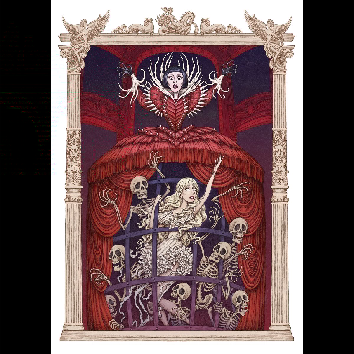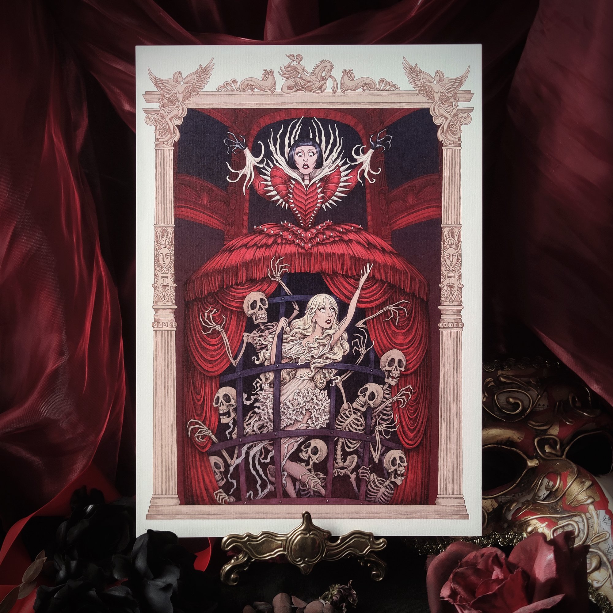 Hand signed A4 art print of an illustration inspired by Lady Gaga's theatrical performance of Coachella 2025.